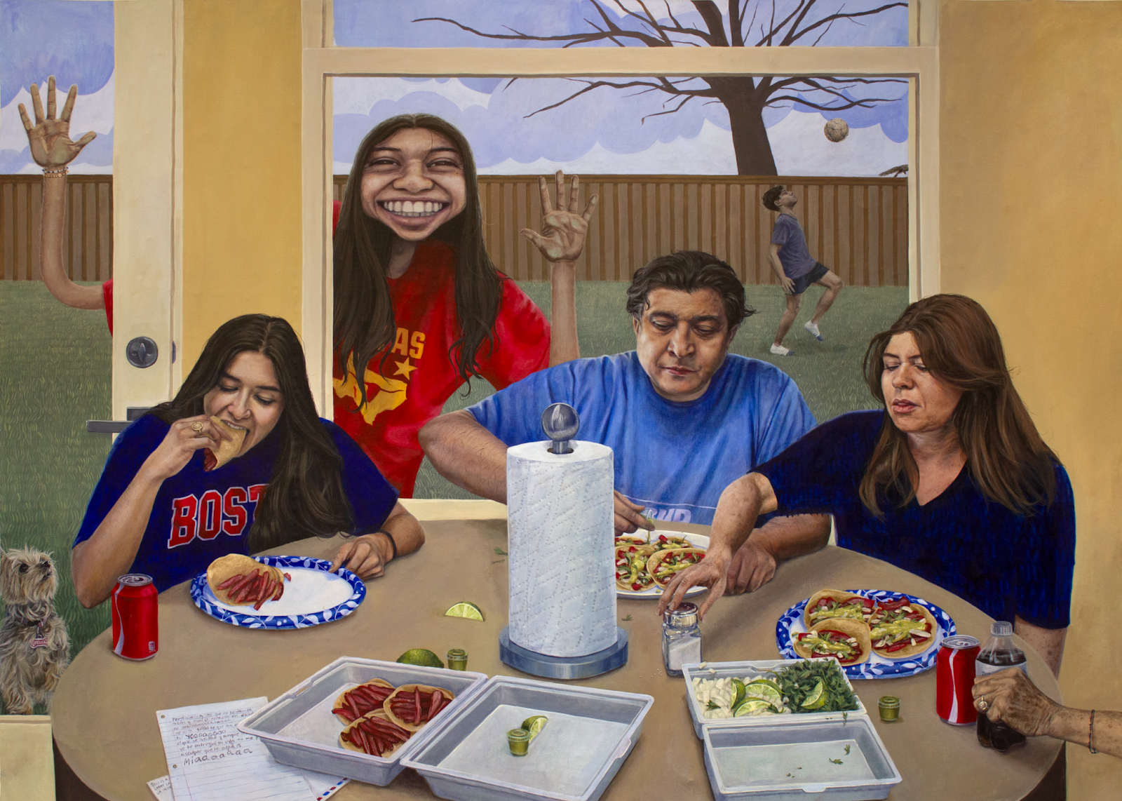 CS: Yeah! [Laughs] and so, I've just been really missing home. A lot of these elements from home started popping up in my paintings. They're just little things about me that you would just see: “Oh, this is her favorite food!” “Oh, she's Mexican!” “Oh, this is where she's from!” So, I just hope people can kind of see that little aspect of me. I was missing home a little bit, and I felt a little bit alone. I don't know. I just think it's nice to… I love it when people see one of my paintings and feel like, “Oh, like this really reminds me of this” or “I really relate to this”. [The painting] is about me for sure, about my identity and my experiences, but it's also a universal experience.