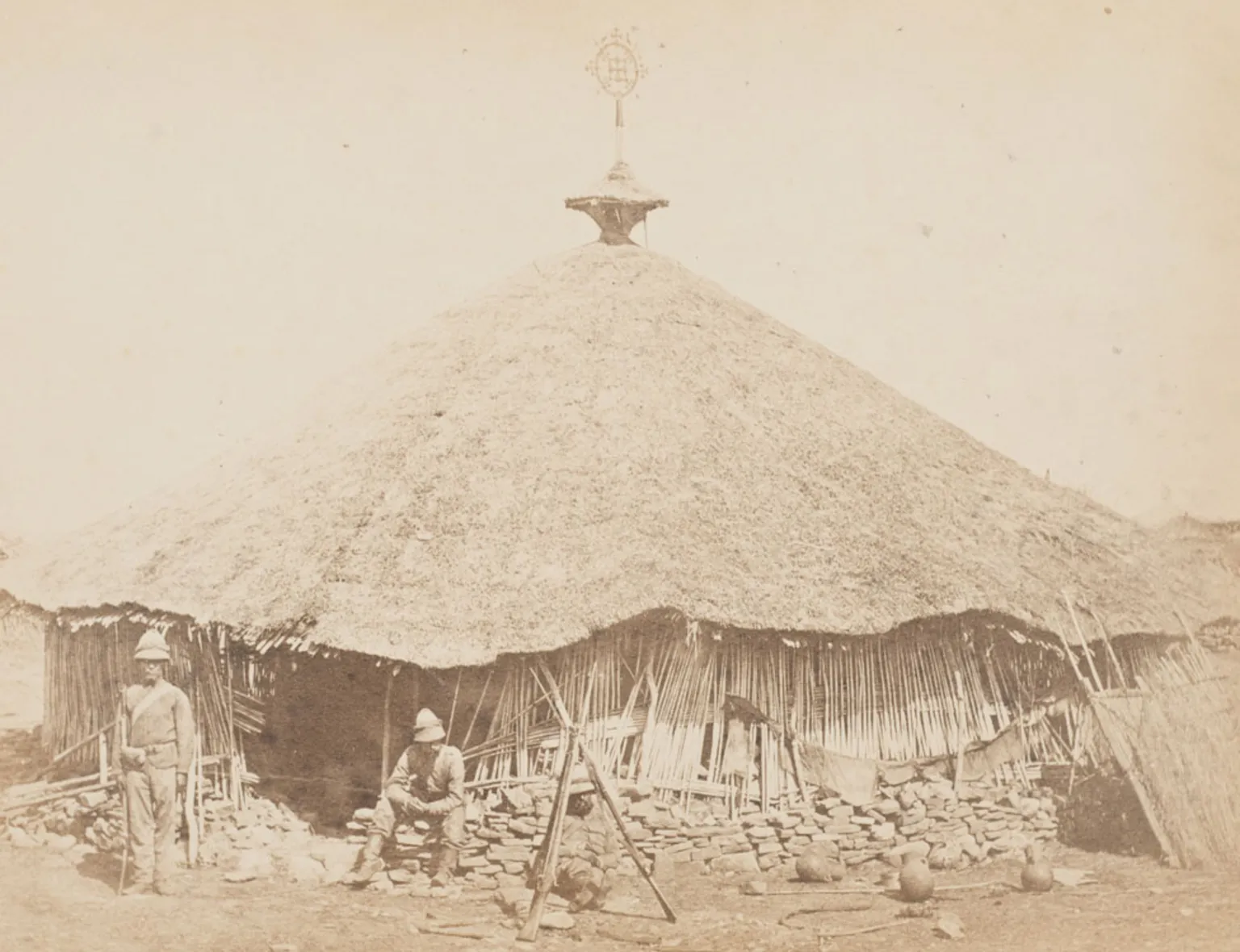 When Mäqdäla was pillaged during Lord Napier’s punitive expedition on 15 April 1868, Sir Richard Holmes, the expedition’s archaeologist and Assistant in the British Museum’s Department of Manuscripts, recalled how he bought both the Crown and Chalice off a British soldier, who was carrying them out of the fort, for £4. Two days later, the Anglo-Indian forces laid siege to Mäqdäla once again, burning the entire fortress, and city, to the ground. The Mäqdäla treasures were relocated to the Dalanta Plain, where a grand auction was held to raise funds for the army. In terms of the scale and importance of the auction, Henry Morton Stanley remarked that “Bidders were not scarce. Every officer and citizen desired some souvenir of Ma[q]dala.” Between 20 and 21 April, the auction raised “5,000l” which was further divided to “a trifle over four dollars” each. Stanley does not mention the fate of the Crown, even as he recounts how Holmes was the recipient of “many interesting articles.” After the auction, a July 1868 article in The Illustrated London News reported that “the Royal treasures from Abyssinia,” including robes, two crowns, slippers, and three seals, were “open to the inspection of the public at the South Kensington Museum, by command of Her Majesty.” It appears that the Crown and the Chalice were split from the original group of loot and instead placed in the collection of the British Museum in June of 1868, nearly two months after they had been looted from Mäqdäla.
